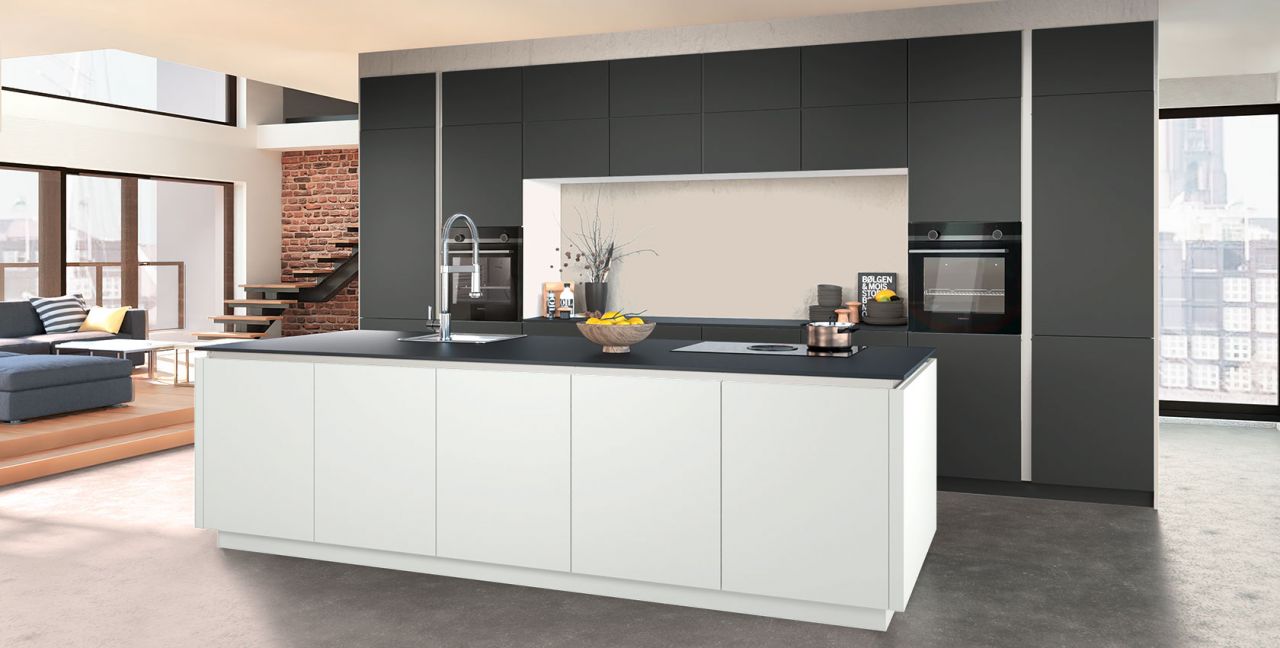 Inclusief 2x RVS-inbouwoven Siemens HB510ABR1 Energieklasse A, keramische kookplaat met inductie en werkbladafzuiging (circulatielucht) Bora GP4U, koelkast Laurus LKG88E Energieklasse E, volledig geïntegreerde vaatwasmachine Laurus LSV60-4 Energieklasse E, RVS-inbouwspoelbak Rodi NewManaus, XL-kasten, wandkasten met klapdeur.
